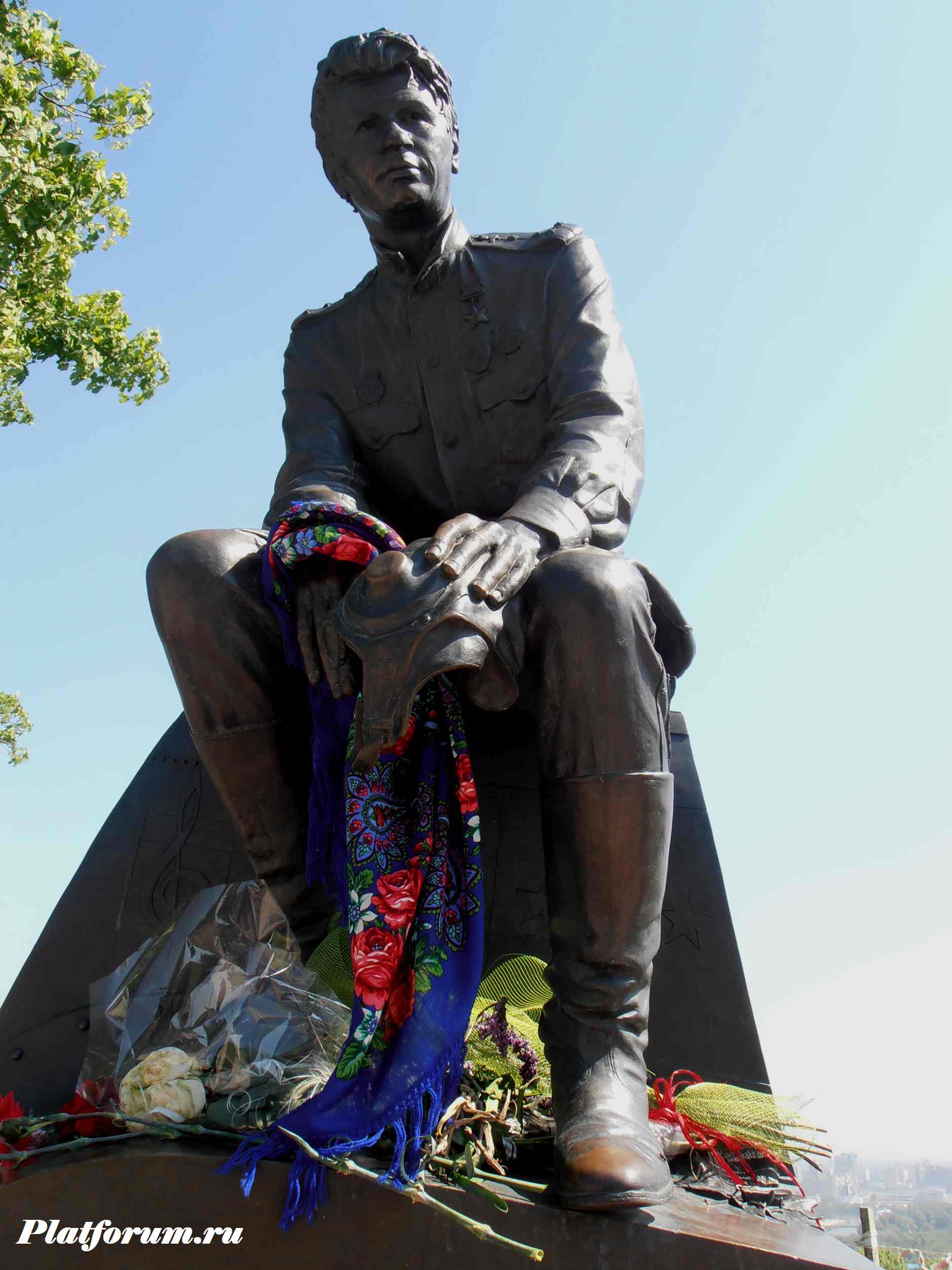 Памятник военным летчикам. Персонаж списан с Леонида Быкова. Он изображен в своём самом известном сценическом образе – командира эскадрильи Алексея «Маэстро» Титаренко из кинофильма « В бой идут одни старики».