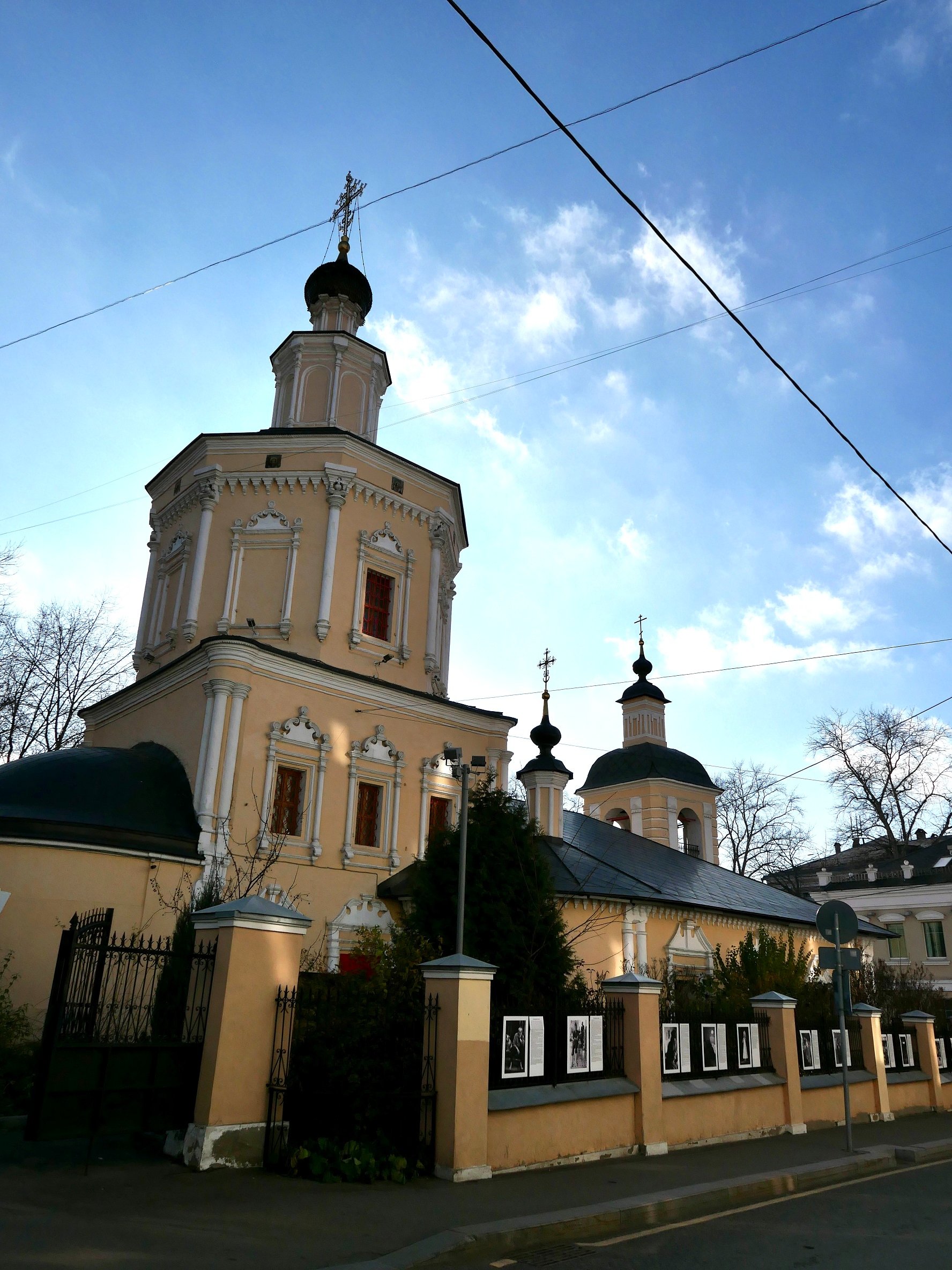 В один из двориков мы зашли посмотреть декор 17 века, удивительно, но в этих особнячках еще живут обычные люди и вовсе не собираются отсюда переезжать. Они, собственно, и открыли этот декор и изразцы. Напоминаю, это был последний день октября, солнце клонилось к закату, и в его лучах таинственно смотрелась из дворика церковь Николы в Подкопаях.