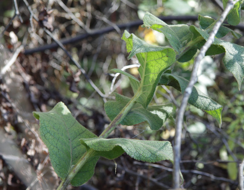 Дамы, давно хочу попросить, помогите опознать. Что у меня такое выросло на участке воспользовавшись тем, что осину повалило ветром, и под ней все лето не косили. Что же это за цветок? дикорос? или что-то культурное занесло? Высокий, с человеческий рост, листья сверху немного опушены, цвело все лето и до самых заморозков.