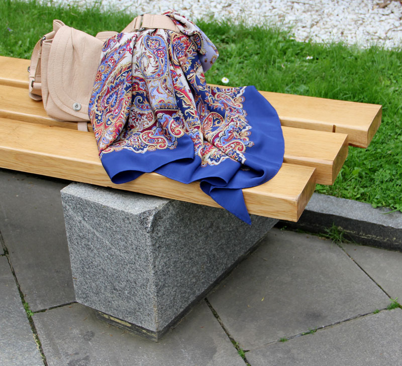 Синий платочек на скамейке в Тайницком саду - в самом сердце столицы. А скамейки там вот такого дизайна...