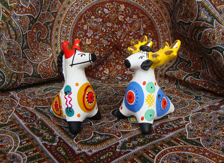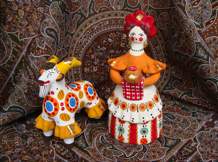 Это Дымковская глиняная игрушка. Идолы и тотемы в прошлом, теперь же радость для глаз и отличное средство для поднятия настроения!