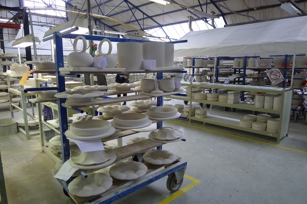 На фабрике всех желающих, и группы, и одиночек, пускают в цеха, где производят заготовки из фарфора. Правда, ходить, где вздумается, нельзя, а только по выделенным для этого проходам по середине залов.