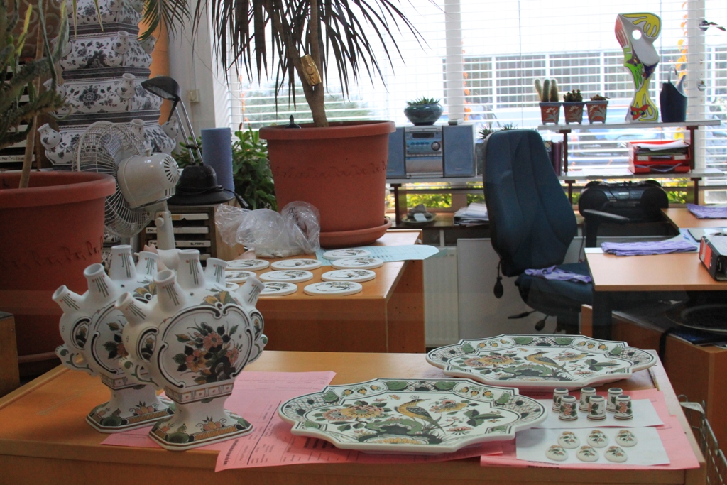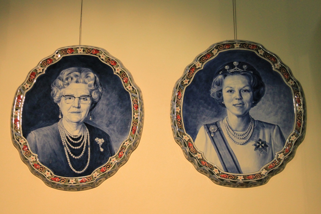 Далее музей мануфактуры. Правящая династия Нидерландов - Оранские-Нассау пользуются любовью и уважением подданых. Естественно, не остается в стороне и фабрика, которая все заметные события в жизни королевского дома - дни рождения, помолвки, свадьбы, рождения-крестины и т.п.- отмечает выпуском памятных тарелок. Такие тарелки выпускаются ограниченным тиражом и по традиции первый подписанный экземпляр преподносится членам королевской фамилии. Этим вещам отведен отдельный зал в музее.