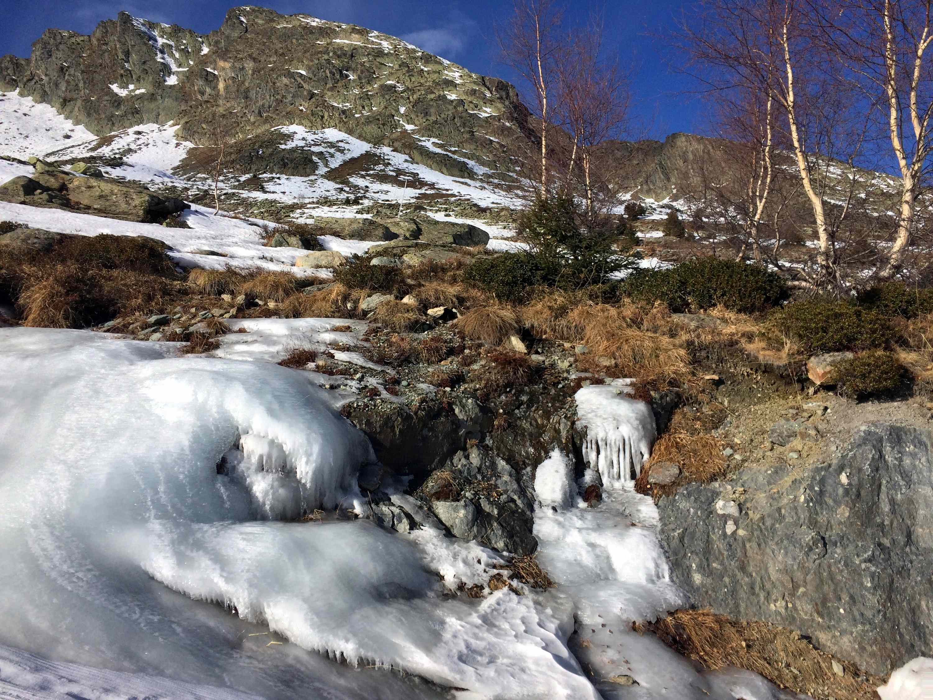 На каждом шагу там горные ручьи и речки, замерзшие этой зимой из-за морозов.