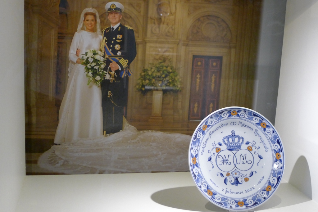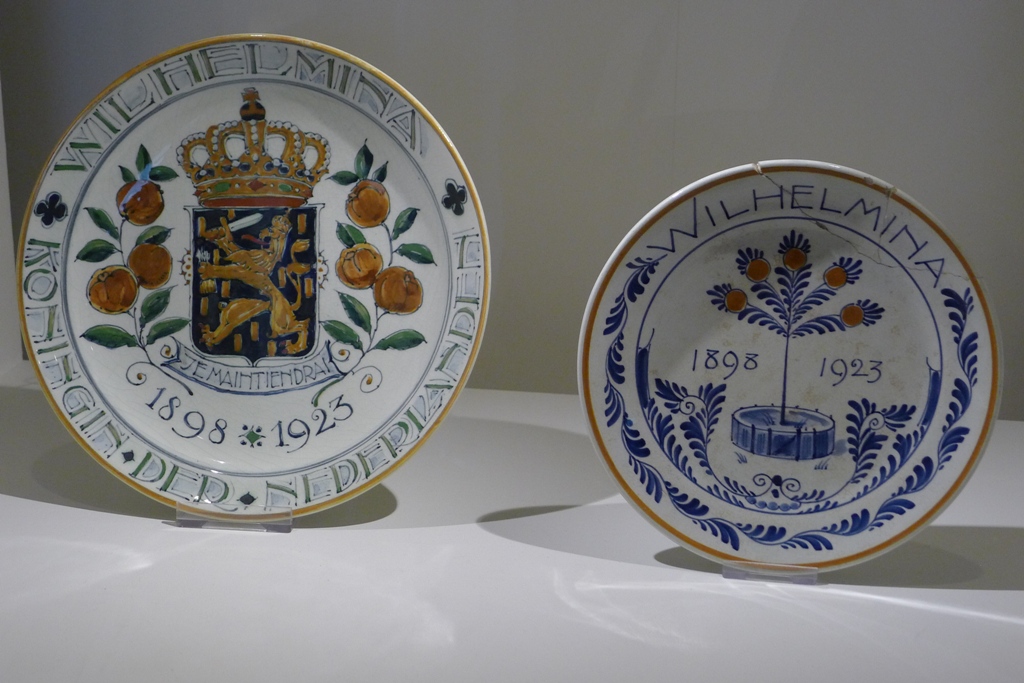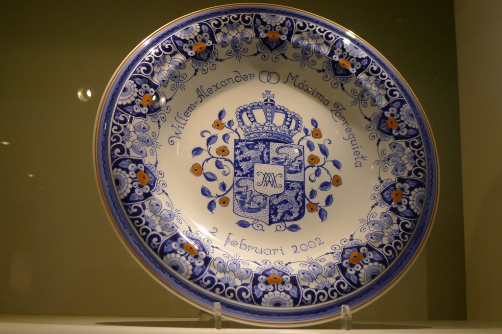 Коллекция памятных тарелок к событиям в королевской семье называется «Оранже» - в рисунке присутствует, наряду с традиционными синим и белым, чуть-чуть оранжевого – яблочки, ленточка по ободку и т.п. Оказывается, оранжевый – цвет нидерландской династии Оранских-Нассау, а узнали мы об этом в первый же день приезда в Голландию. Вышли из поезда и ничего не понимаем - на улицах толпы всех возрастов от мала до велика, и на каждом что-то оранжевое – платья, юбки, брюки, пиджаки, плащи, немыслимые шляпы, кепки, туфли, кроссовки, сумки, рюкзаки, короны, парики, очки, ремни, галстуки, платки, шарфы. Кто-то полностью в оранжевом, у кого-то часть туалета. Везде оранжевые флаги, шары, гирлянды. Запомнилась девушка – точная копия Принцессы-Трубадурочки из мультика «Бременские музыканты» - такое же мини-платьице и корона, естественно, оранжевые, длинноногая, светлые распущенные волосы…Оказывается, в стране большой национальный праздник – День королевы. Когда правила Вильгельмина (бабушка нынешней королевы Беатрикс), этот праздник был 31 августа в день ее рождения. Потом, когда на престол взошла ее дочь Юлиана, праздником стало 30 апреля. А Беатрикс, у которой день рождения зимой, став королевой, не стала больше ничего менять и оставила праздник 30 апреля в память о матери.