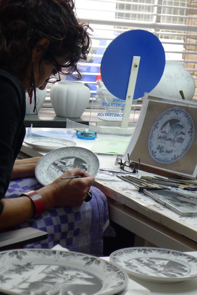 Большие картины из плиток и рождественские тарелки расписывают художники-мастера, обучение которых длится около 10 лет.