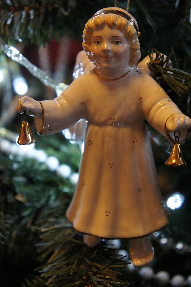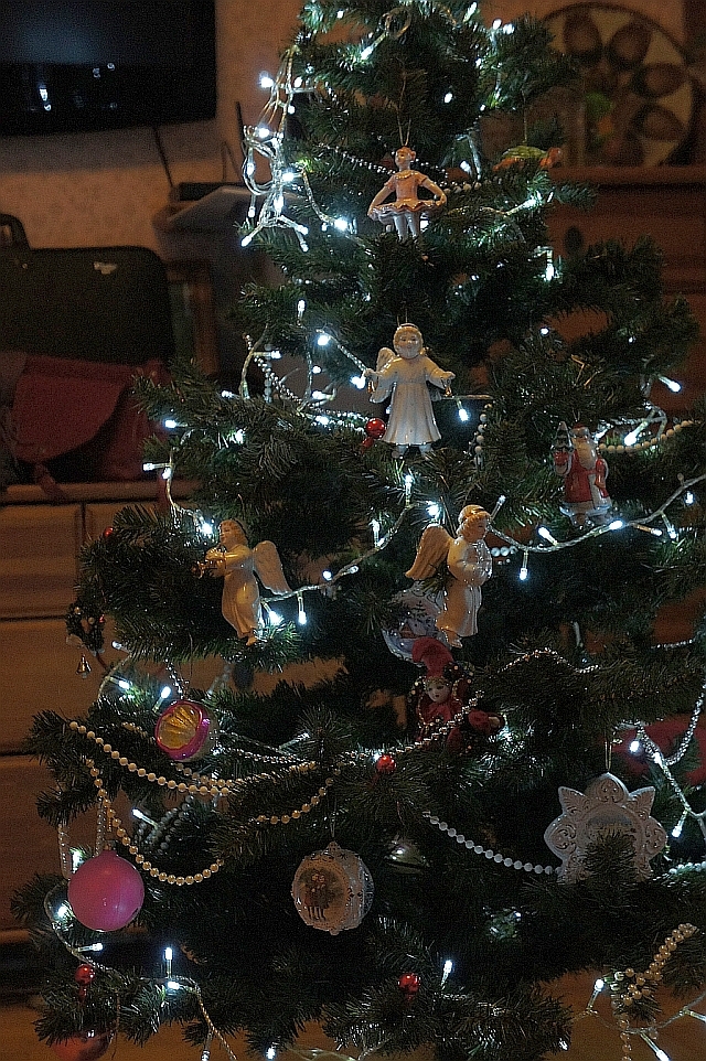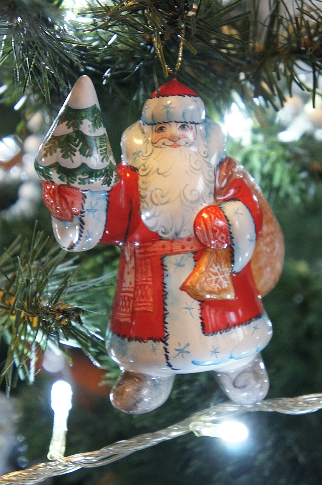 Шарики тоже есть, и с мишурой, и светящиеся. И корзиночка такая, и сосульки, и шишки тоже. А вот домиков было много, а ни одного не осталось, но они были немного другие, красно-желтые.