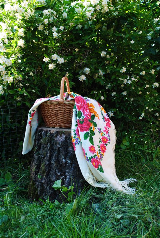 Моя хлопчатобумажная шаль без имени и фамилии на прогулке в саду :) .