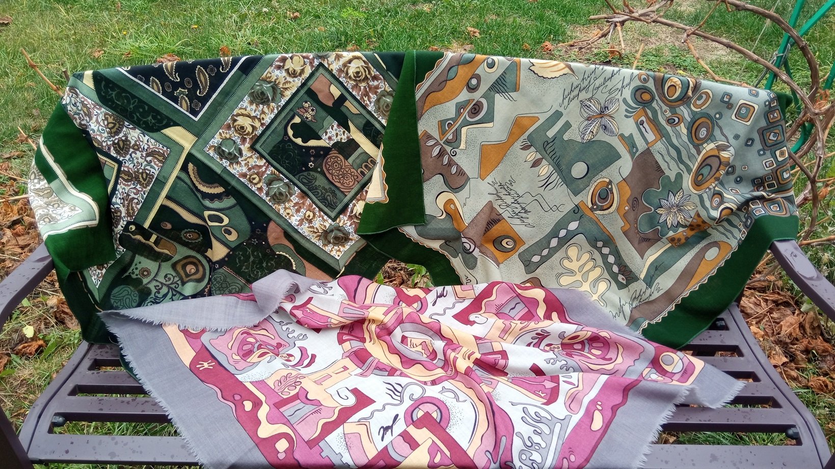 А про шали... Конечно, есть чисто математические принципы создания красоты (все эти сочетания оттенков по цветовому кругу, по контрастности и прочее), но личность в данном случае первична, и она (женщина в шали) должна быть счастлива, а не просто гармонична и красива. Не зря же говорят, что кому-то нужен торт, а кому-то - свиной хрящик. Ну, или переводя на платочный язык - кому цветы, кому орнамент.