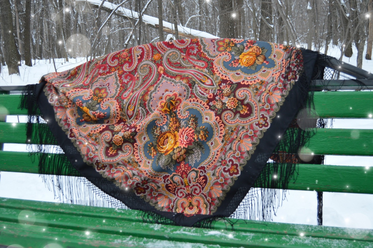 Елена А, нравятся ваши портреты платков. Ц сказки и правда, будто подружки, склонились друг к дружке, шепчутся. А Бархатная ночь нашла своё дерево
