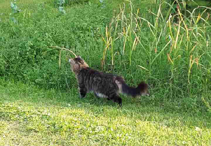 Куст красивый, аж шапками цветы. А кот - роскошный красавец!