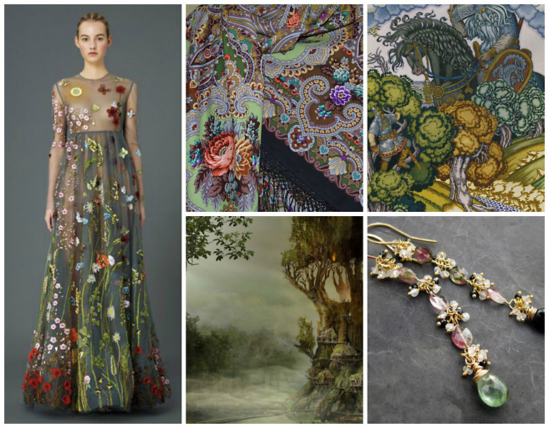 Сказка 18 (фото с форума, я прошу прощения, но не могу найти автора сейчас; надеюсь, она не будет против, когда увидит, и спасибо ей за красивый кадр), платье Valentino pre fall 2015, серьги Sea Fairies Jewel Box (https://www.etsy.com/listing/219735931), обои http://www.wall321.com; иллюстрация Ивана Билибина