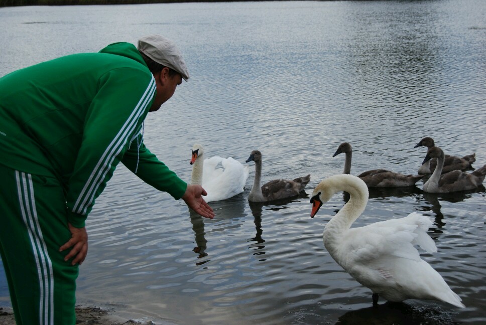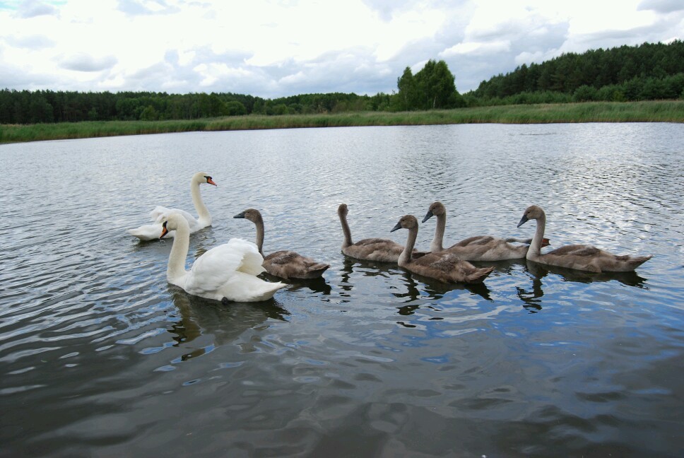 Стартует Недалеко от нас оказалось лебединое озеро, одна из семей согласилась позировать