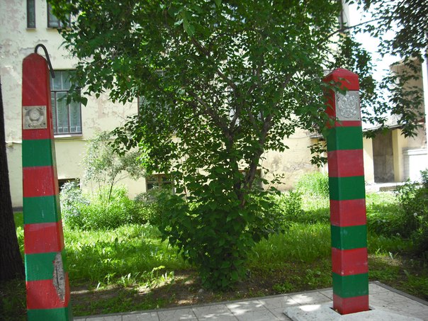 Во дворе Поганкиных палат стоят пограничные столбы,которые в течении двадцати предвоенных лет стояли на границе РСФСР – СССР с Латвийской и Эстонской республиками.