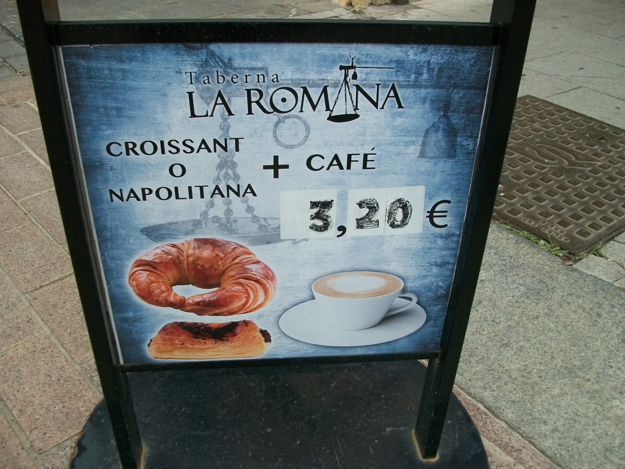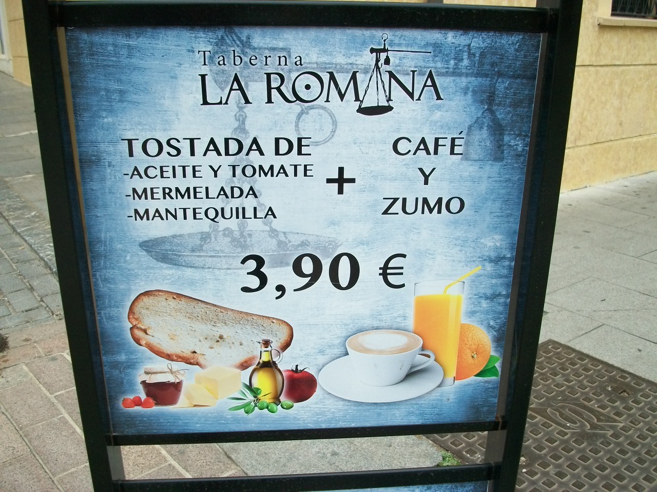Вообще, мест где поесть в Кордобе много, особенно в старом городе. Завтракала я в отеле за 7 евро - фуршет, но горячих блюд не было. У кафешек утром выставляют рекламные щиты с предложениями завтраков.