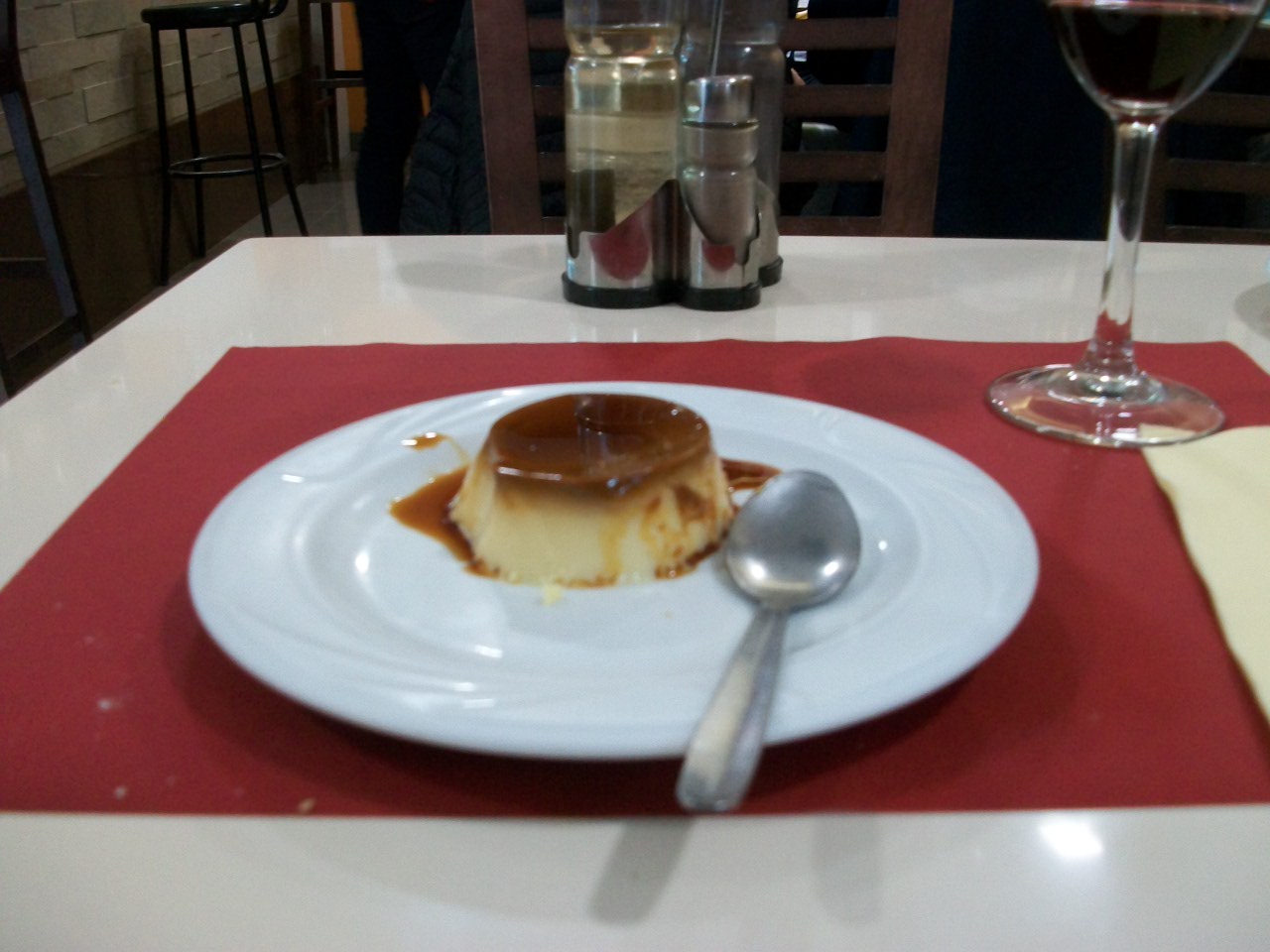 Второе блюдо - это кальмары в панировке. Третье - желеобразный десерт. + бокал вина и булочка (не запечатанная в целлофан)