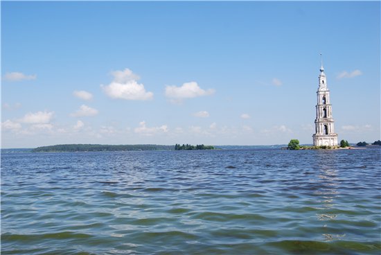 А я в прошлом году подплывала к колокольне и трогала её рукой... Волга там такая широкая!