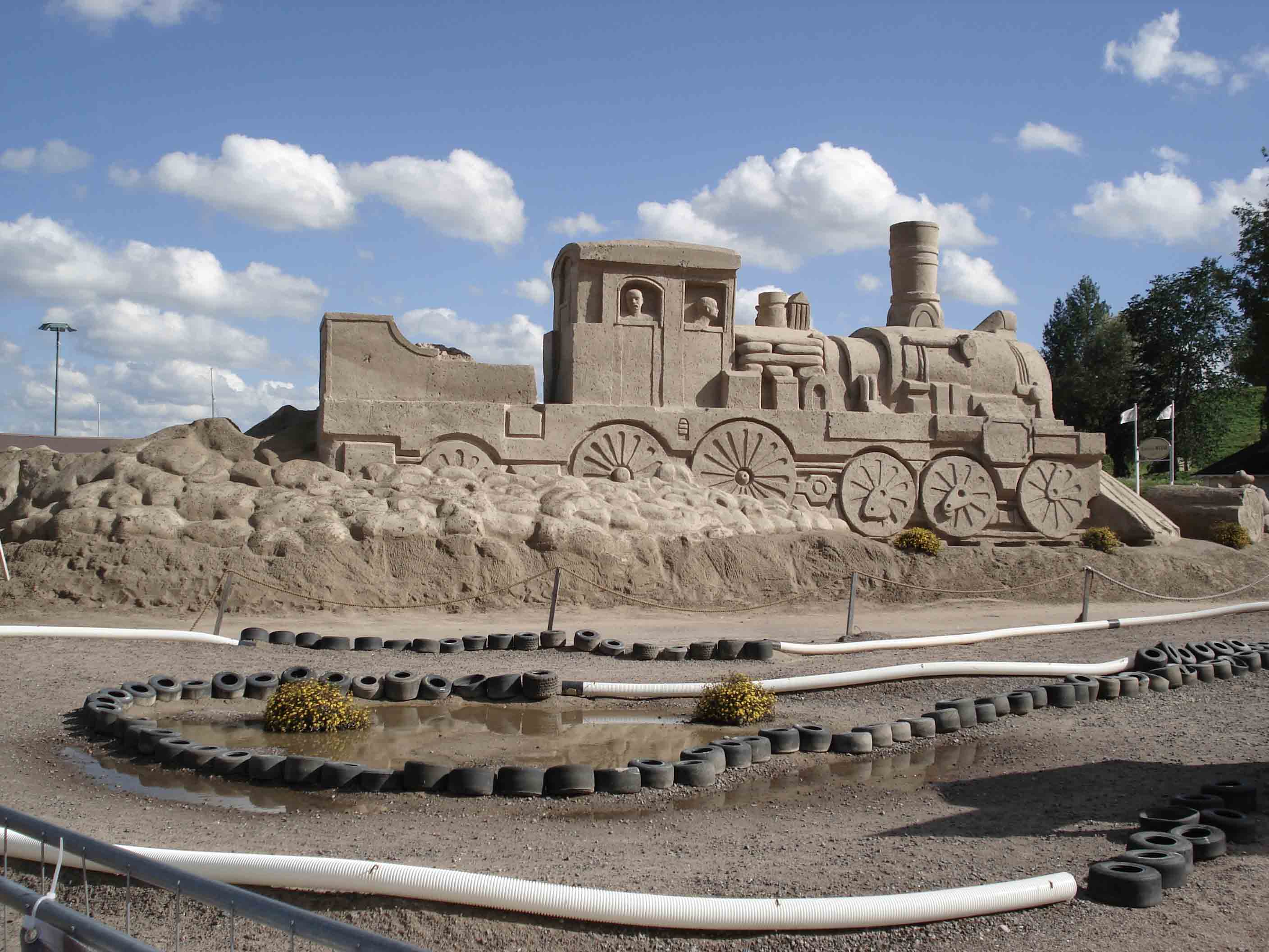 Спасибо за внимание к теме! ^% ^% ^% Продолжим... Мы на берегу Сайменского озера. А вот и первая фигура...(Кликните, чтобы почитать, что спрятано под катом)... Паровоз, прямо как настоящий!