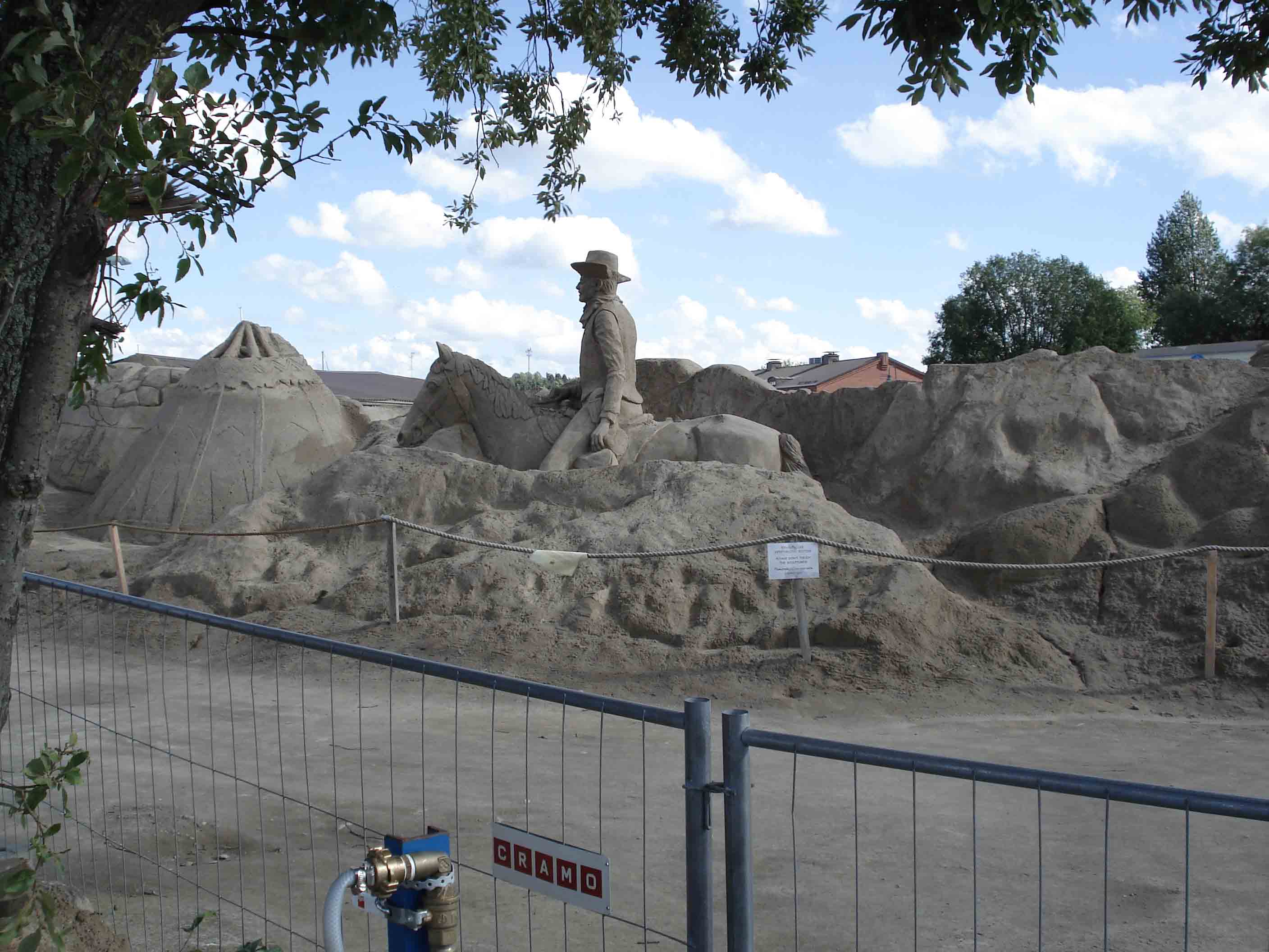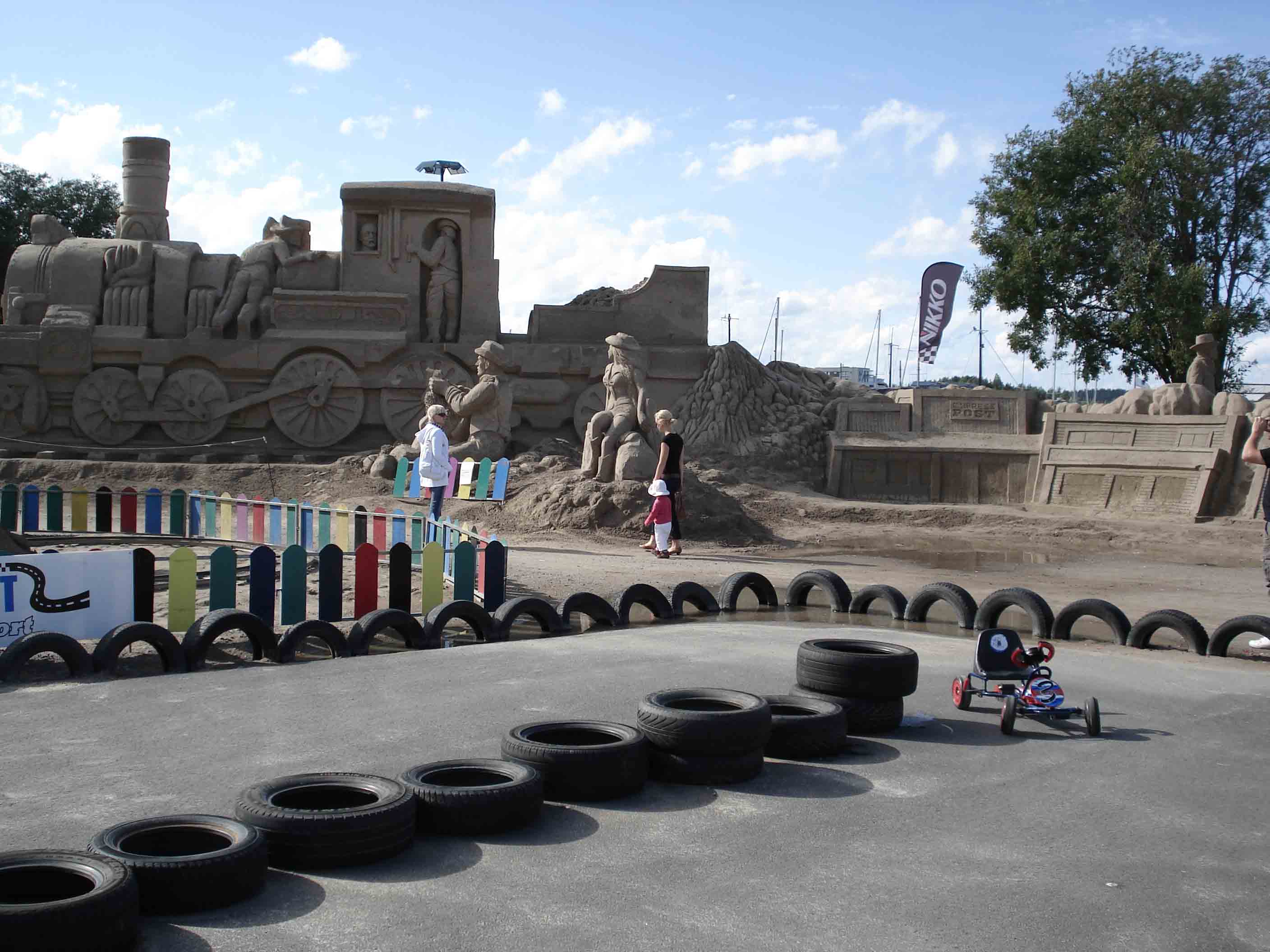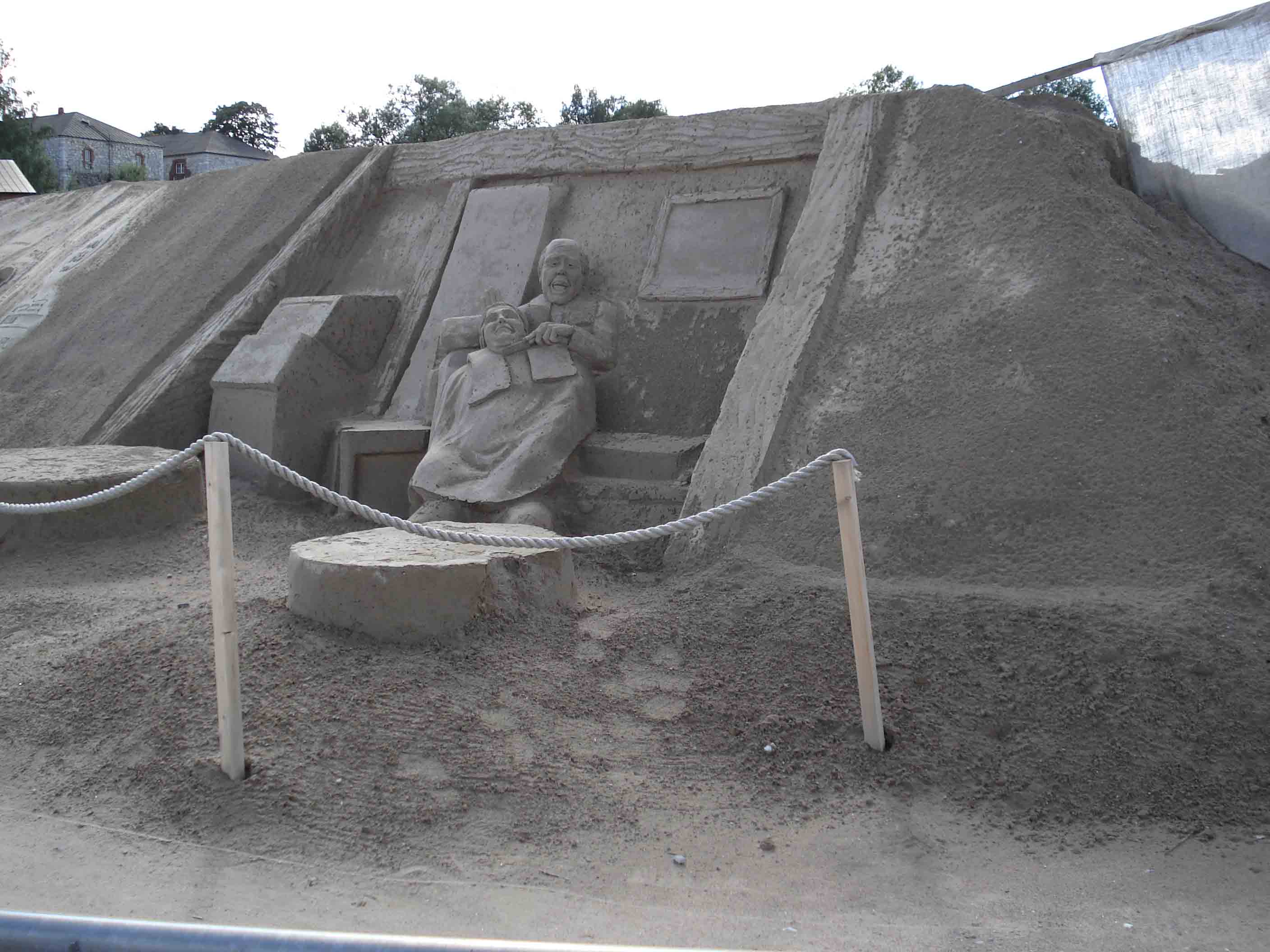 Вот и Сайменское озеро показалось! С горочки вниз... А там тоже нас интересное ждет... Пристань, корабли и яхты и...ежегодный фестиваль песчаных скульптур, даже целого города! Уверяю, такого вы не видели, если, конечно, не были в Лаппеенранте! На строительство такого города уходит более трех тонн песка! Но это уже не сегодня... Караул устал, в крепости тоже наступает ночь :lol: !