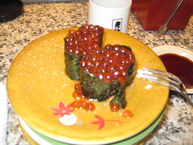 Кайтан-суши бар. Все блюда подают на транспортер,и ты выбираешь.Тарелочки разного цвета,это означает цену блюда. Прикольно!Весь мой праздник живота обошелся в 450 рублей.В Хабаровске так не покушаешь...