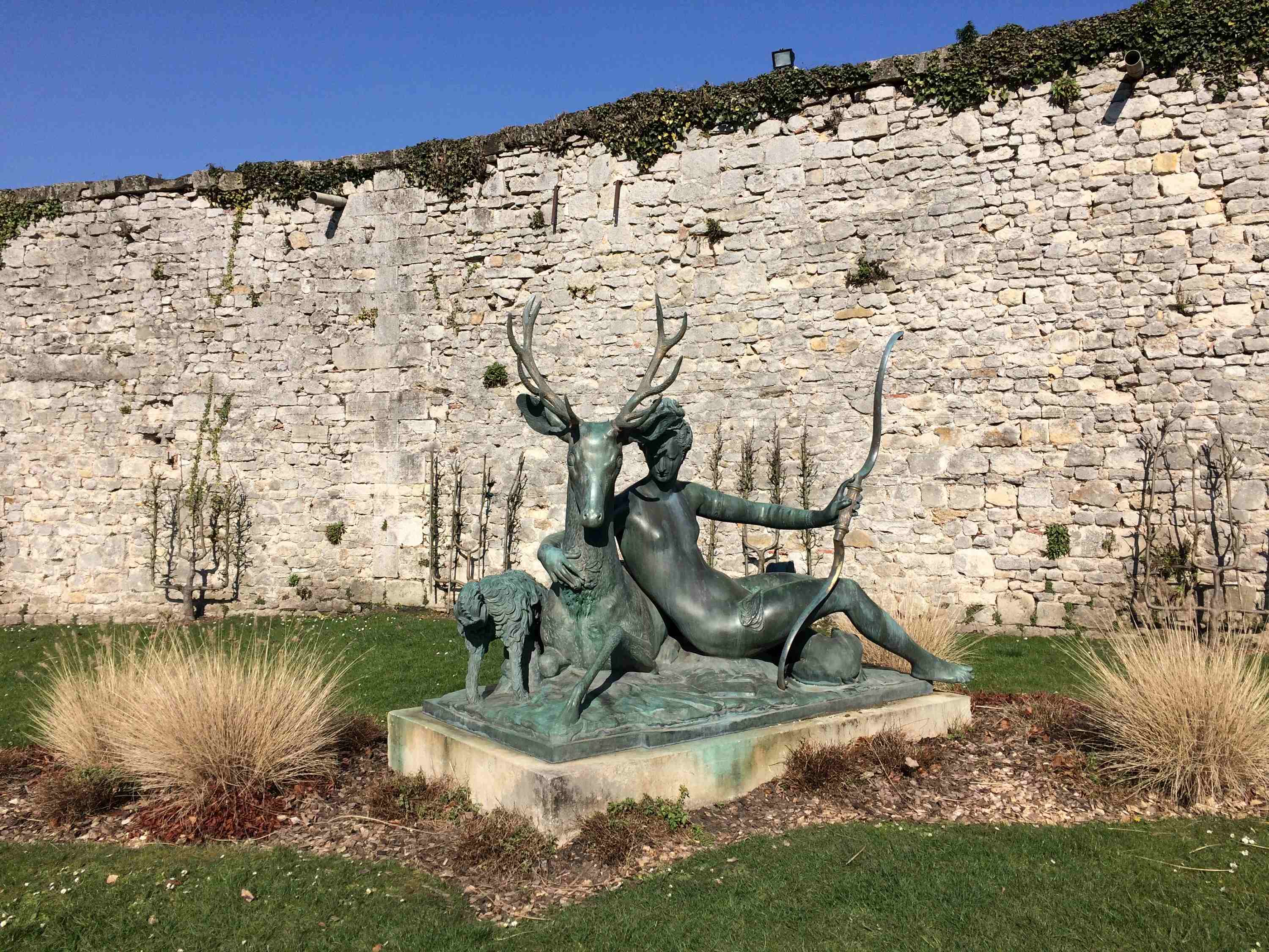 Здесь же в парке – статуя Дианы и 200-летний медный дуб с необъятными стволом и кроной на фоне все тех же галло-римских стен.