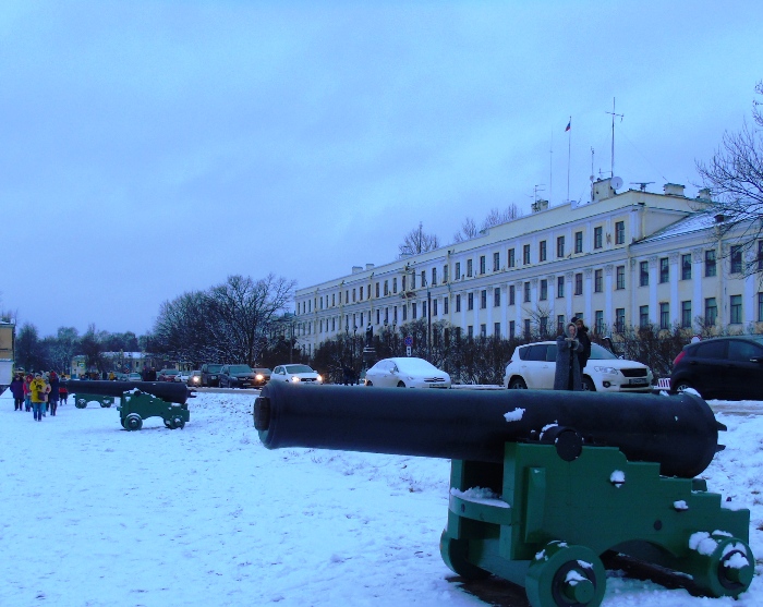 Мелкие суда ждут прохода военных кораблей (парад). Экспозиция военной техники. Редко бывает открыта.