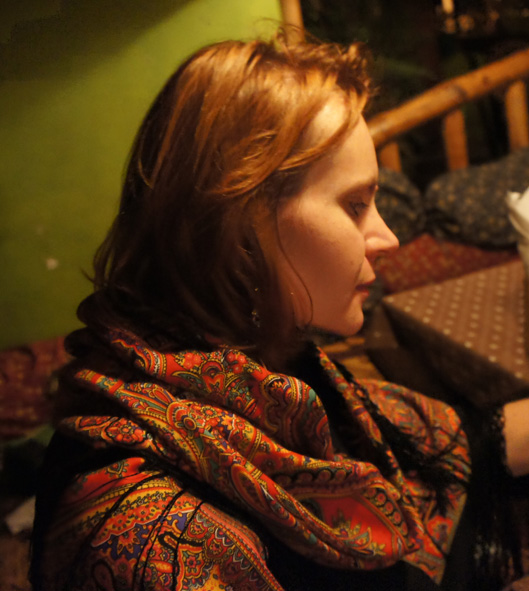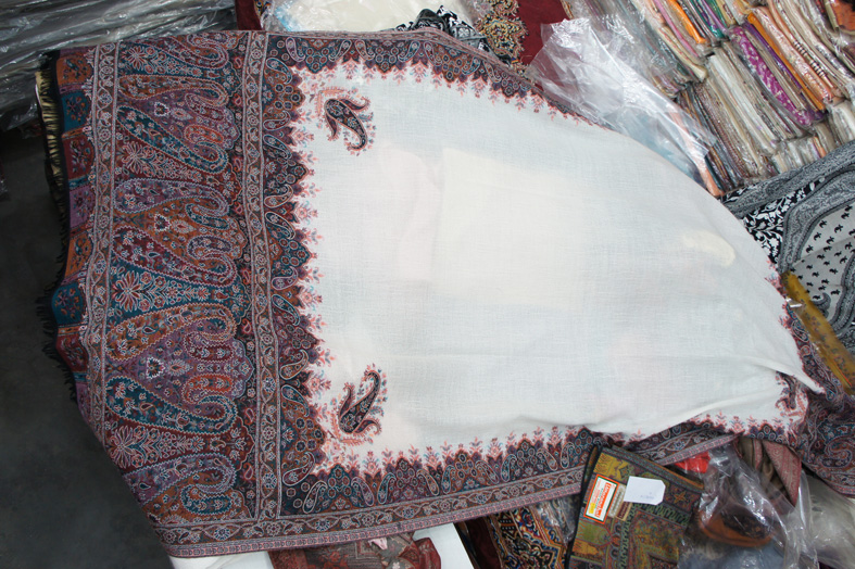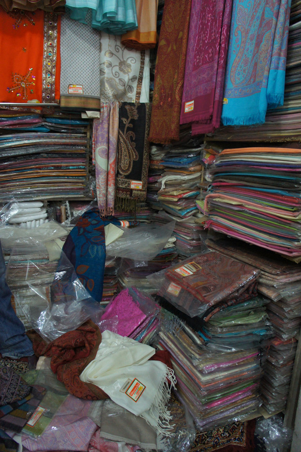 и на сладкое, магазин палантинов, пашмин и шелка за хозяном магазина полки, где стопками сложены шелка всех оттенков, тканные пашмины, на которые уходит по два месяца работы мастерицы