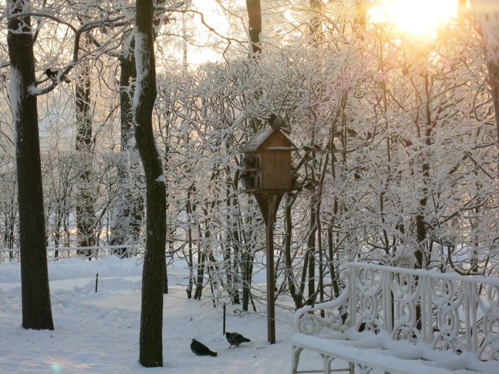 А эта с праздников ещё красуется, синичек радует.