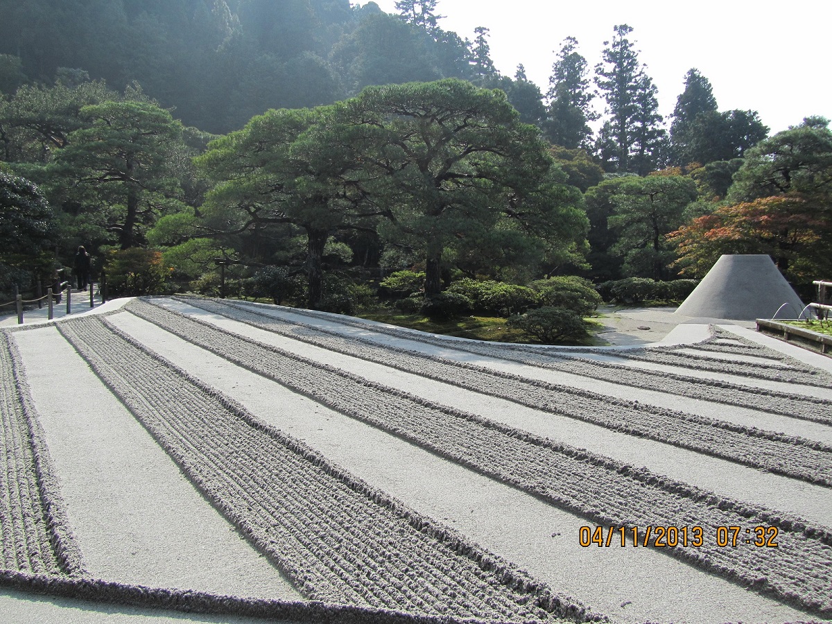 И здесь мы увидели интересный вариант камней - обязательного элемента японского сада - мелкие-мелкие, почти песок. Из них выполнены такие вот инсталяции.