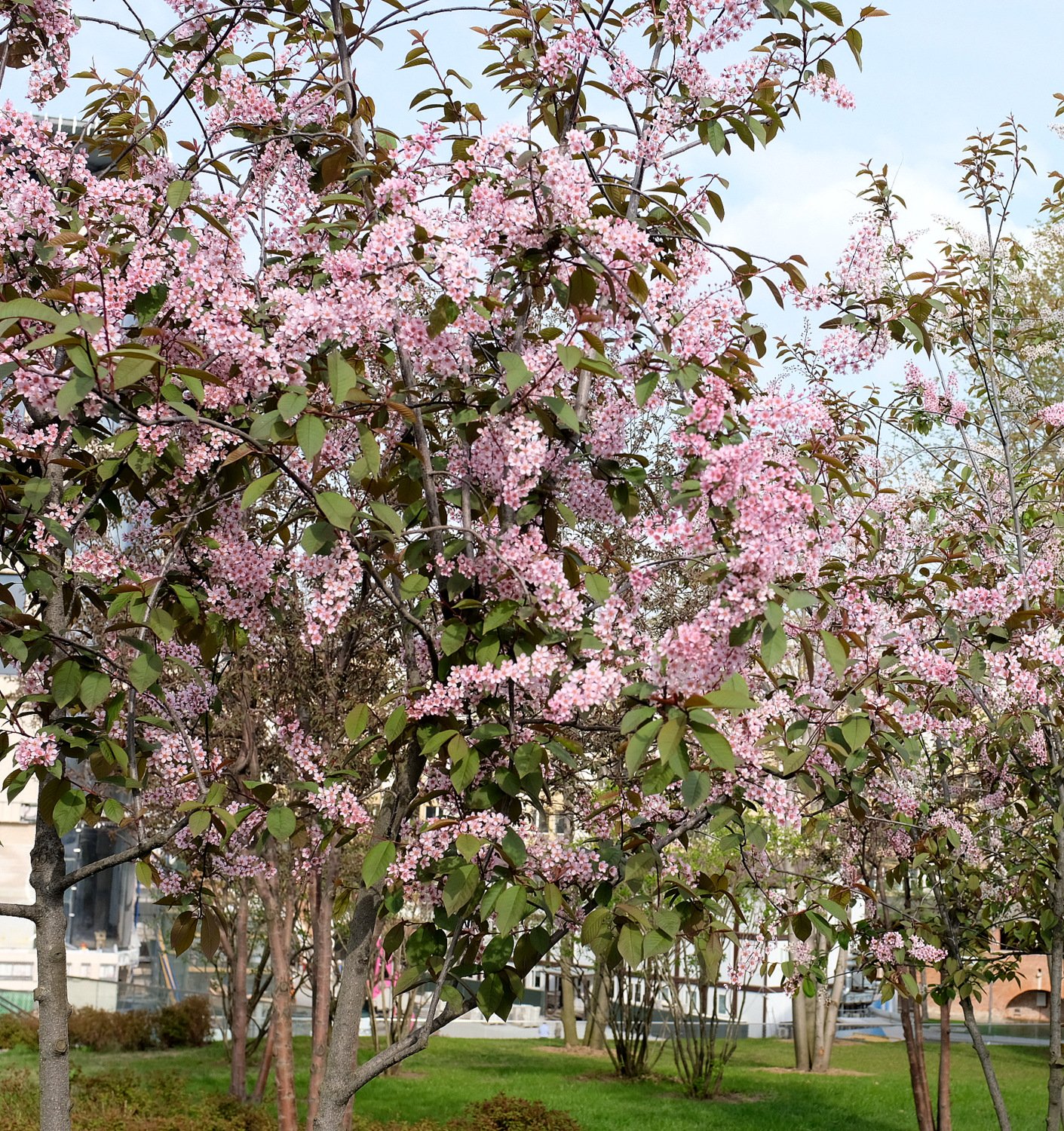 В парке Зарядье я нашла удивительную черёмуху. Розовую!!!