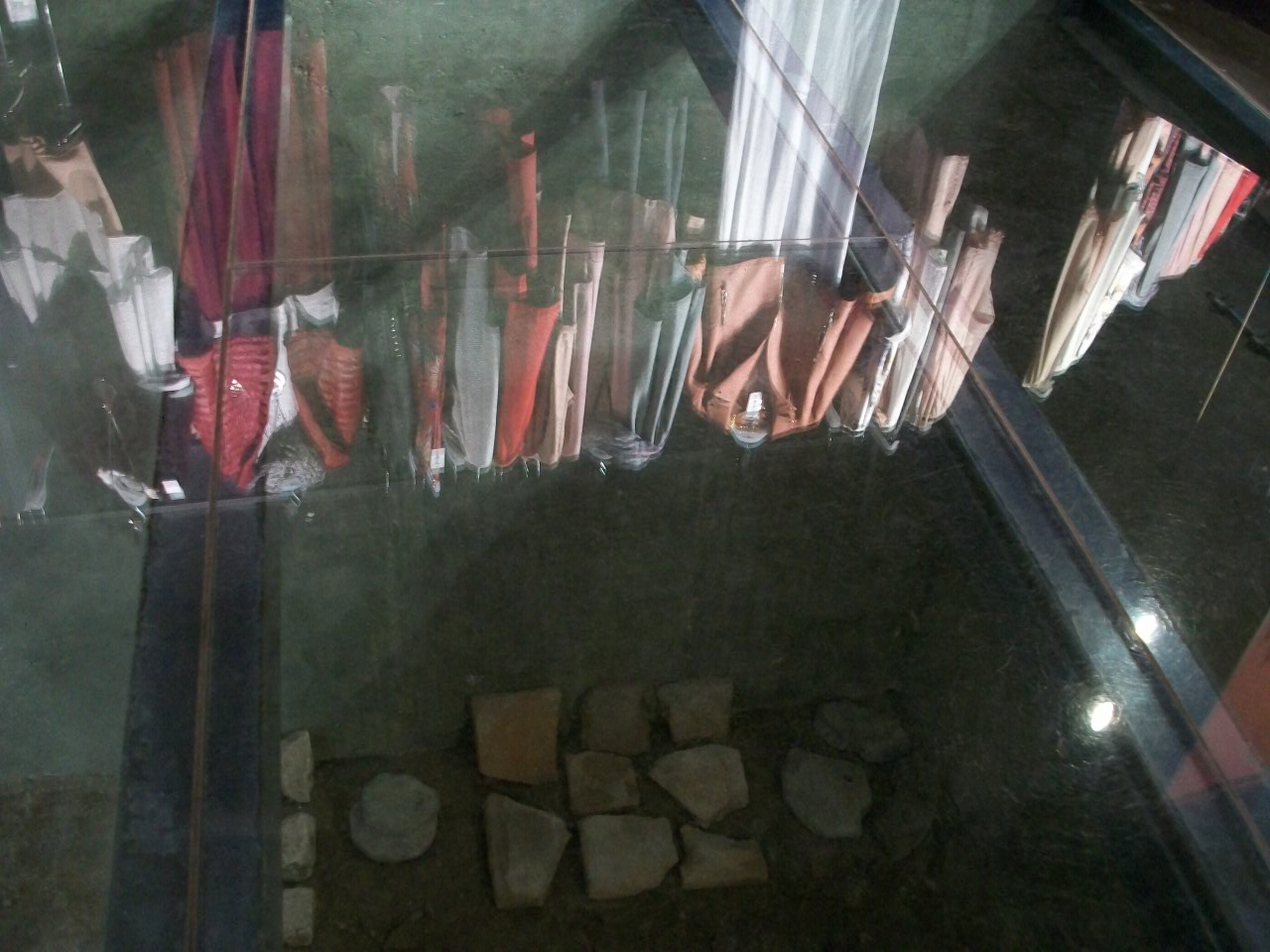 гуляя можно зайти в сувенирный магазин или магазин одежды, который неожиданно имеет в подвале стеклянный пол, где глубоко в низу какие то древние камни.