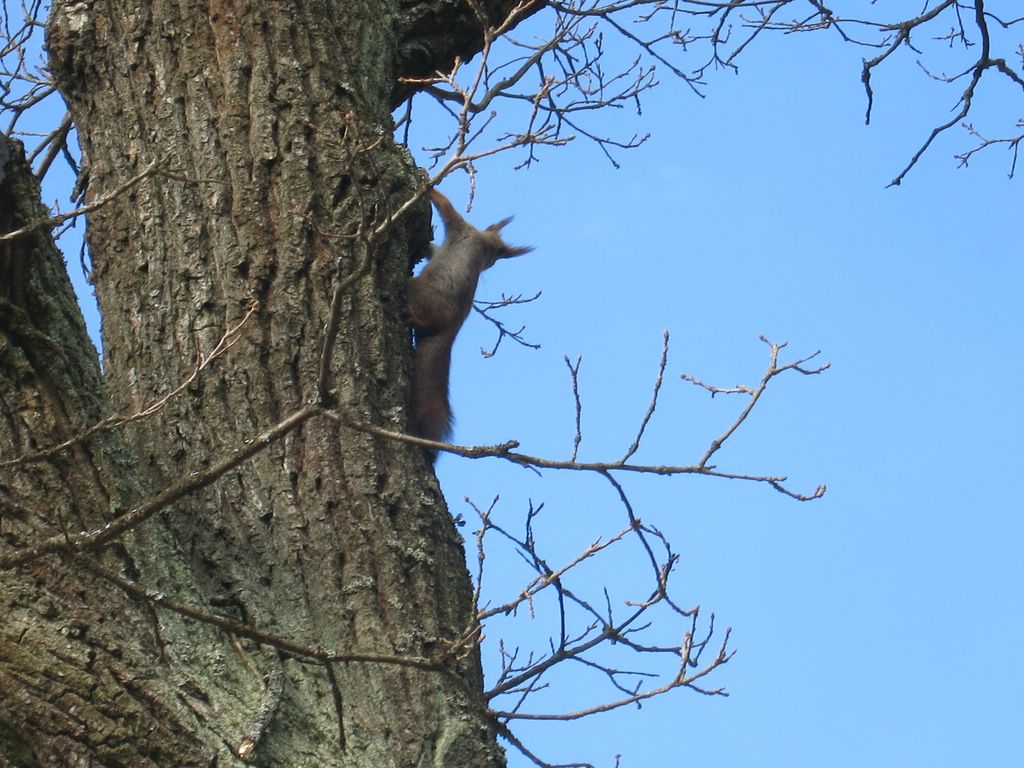 Тильда встретилась возле дерева с белкой нос к носу ))) Белочка конечно взлетела вверх , а Тильда вскарабкаться не смогла )))