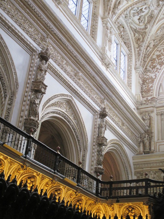 По поводу Мескиты - наша экскурсовод придерживалась такой точки зрения : Мечеть - архитектурный шедевр, вмешательство в конструкцию мечети и дальнейшее строительство, перестройка, до-стройка, над-стройка с ориентацией на христианство - это чистой воды надругательство, варварство и то, что этим "строителям" не забудут никогда...(Собственно и путеводители эту мысль ( в более мягкой форме ) навязывают - "По распоряжению епископа Алонсо Манрике в 1523 году в центре исламского молельного зала начали строить большой собор. Храм, в архитектуре которого соединились черты готики и Ренессанса, смотрится в Меските чужеродным телом....По сравнению с изысканной красотой исламского молельного зала собор заметно проигрывает...." (путеводитель Baedeker "Испания", 2011 год)).
