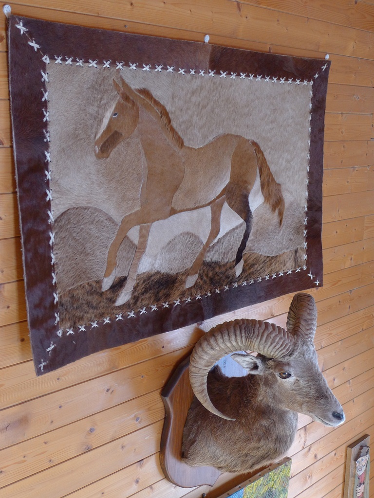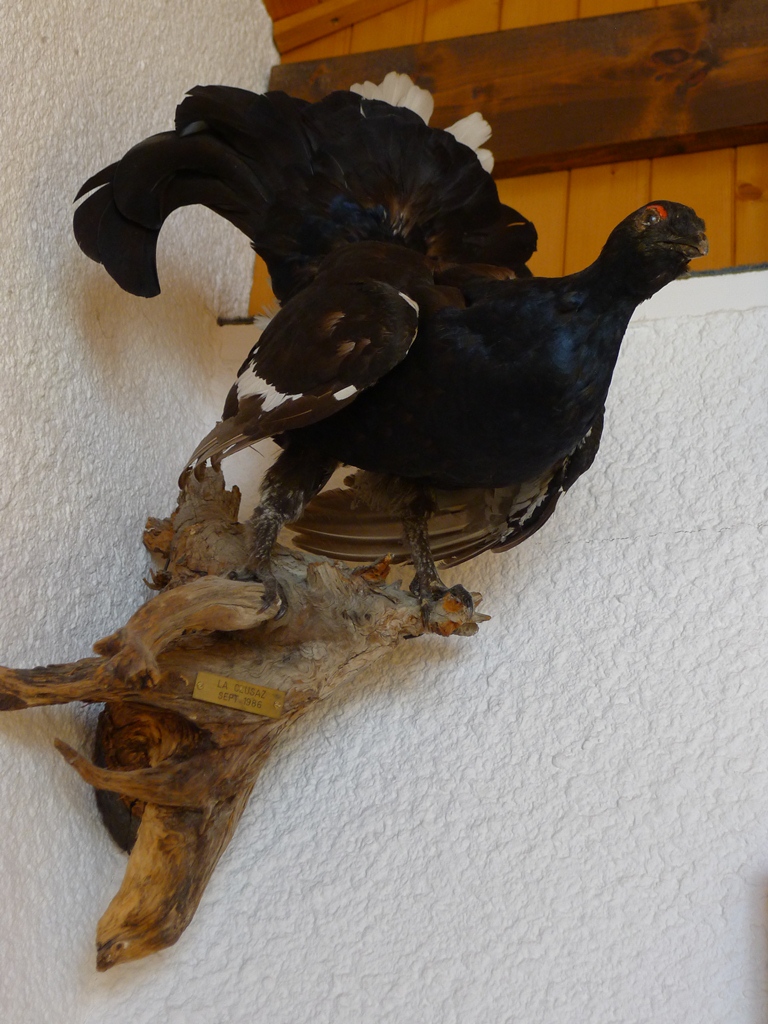 Повсюду чучела зверей и птиц, добытых в окрестностях (судя по латунным табличкам – «Ля Клюза, сентябрь 1986», «Ла Бальм, октябрь 1990»), на стенах, полу, сундуках разные шкуры. Определенно здесь не хватает «зеленых» :!! .