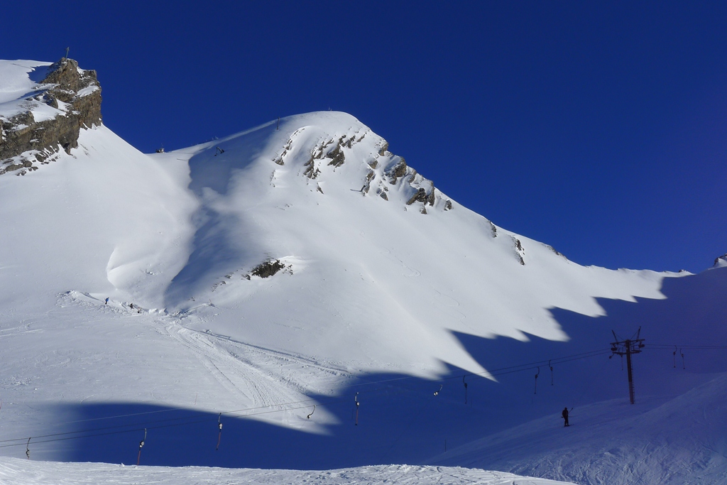Massif de Balm, самая высокая зона, с северной экспозицией, благодаря чему в этот бесснежный январь удалось неплохо покататься. Правда, катались только выше 2000 м, ниже трассы, проходящие по хвойному лесу, закрыты – мало снега и много камней. Ну, может, оно и к лучшему (помня о волках :lol: )
