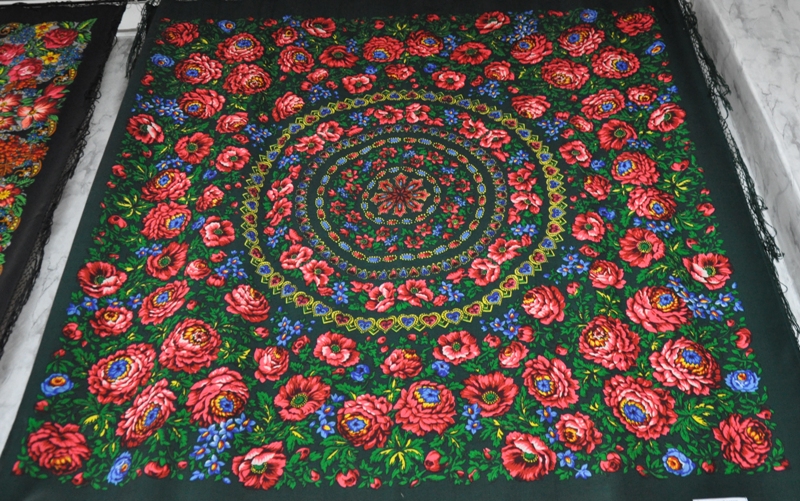 А эти два, мне кажется, не платки, а, скорее, покрывала или скатерти. Присмотритесь, эти два полотнища прямоугольные, просто подрублены и без бахромы, да и рисунок второго напомнил (не только мне) то покрывало, что показывала ANNI. Вам так не кажется?