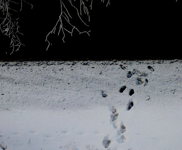 Выпал первый снег, я вышла из дома, радуюсь, смотрю, а на снегу лапки пробежали чьи-то, так запомнился момент А это фото из моего окна, опять следы