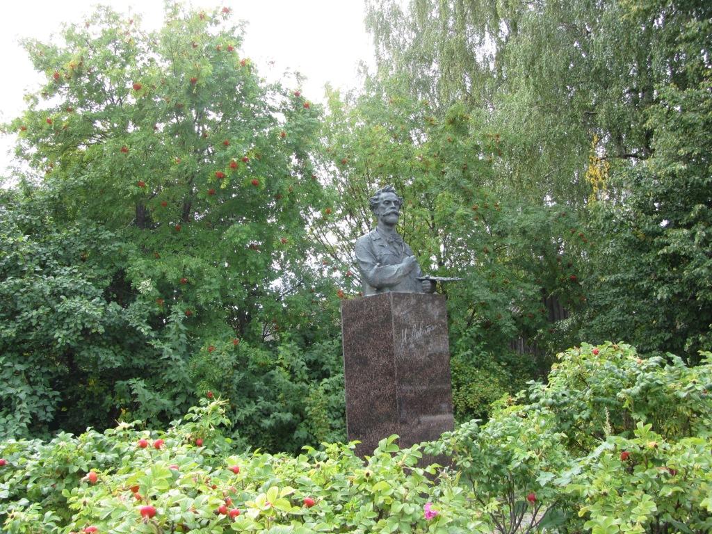 ... и памятник ему, в окружении березы, рябины и кустов шиповника.