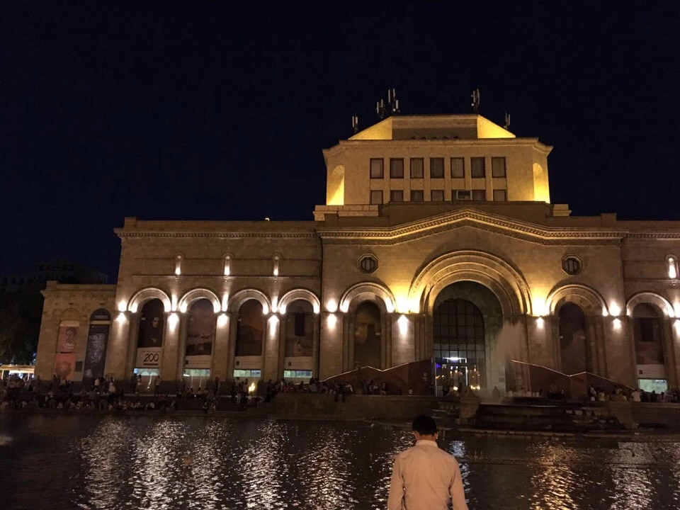 Вечерний Ереван,площадь и цветомузыкальный фонтан