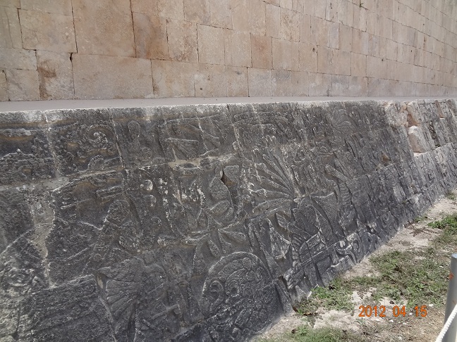 Ещё один рассказ. Игра в мяч была одним из любимых развлечений индейцев. Но она носила ещё и ритуальный характер. В разных городах были разные поля для игры в мяч, разные правила, где-то использовались кольца, где-то - нет. Но смысл был один : нужно было победить. В Чичен-Ице игра в мяч была одним из центральных событий в жизни города : здесь правила игры были таковы - каждая команда играла на своей стороне поля, подавая каучуковый мяч капитану, который должен был послать битой его в каменное кольцо, закреплённое на своей стене. Как только это происходило - игра заканчивалась. Тогда победитель (капитан забившей команды) занимал почётное место на специальном постаменте на краю поля...и начинался ПРАЗДНИК в его честь! Победитель наблюдал за тем, как люди танцевали, пели, веселились и пил специальный напиток, который ему подносили жрецы...постепенно он "отключался" (потому что напиток был сонный, наркотический...). Как только победитель "отключался" за дело принимался капитан проигравшей команды - он ....отрезал голову победителю, соскабливал с неё кожу и вывешивал на колу возле "Стены Черепов"...Люди всё это видели, продолжали танцевать, веселиться и петь...