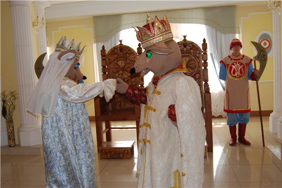 Мы вошли во дворец и нас встретил мышиный рыцарь, а симпатичные девушки пригласили осмотреть царские палаты