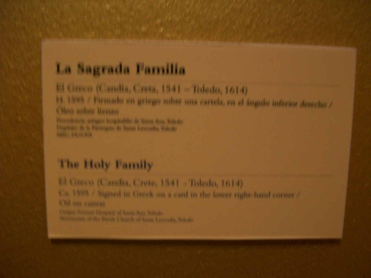 Есть и другая картина Святое семейство тоже Эль Греко, но в музее Святого Креста (Museo de Santa Cruz).