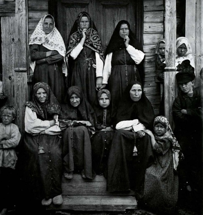 Очень старое фото (с просторов интернета)...."Типы раскольниц-поморок. Семеновский уезд 1897, это инф. с источника (можно посмотреть по ссылке гугла, много интересных старых фото). На девушке в центре похоже что ПП платок?. Фото, где девушки это Манчжурия, 30-е годы.