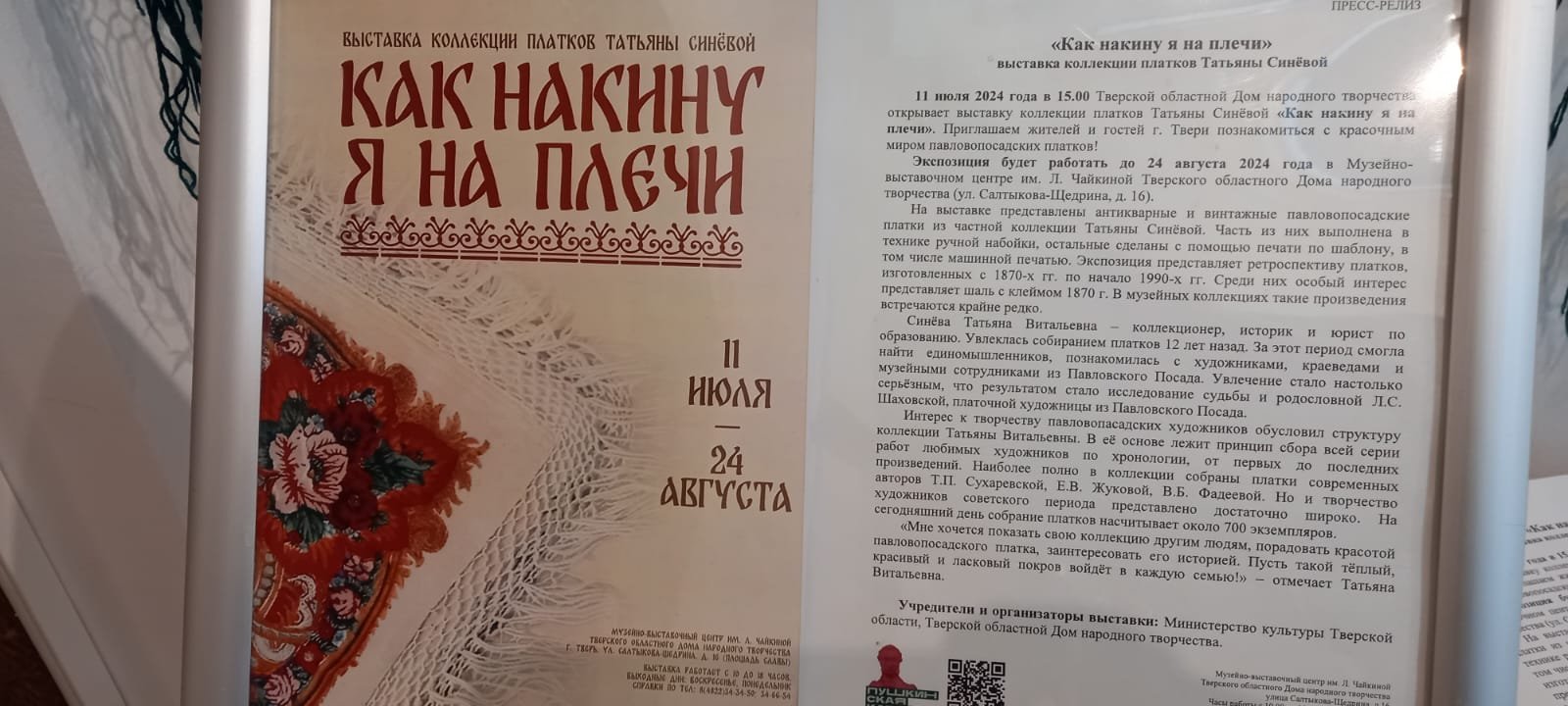 Вот, забыла еще фото выложить. Выставка платков продлится до 17 августа.