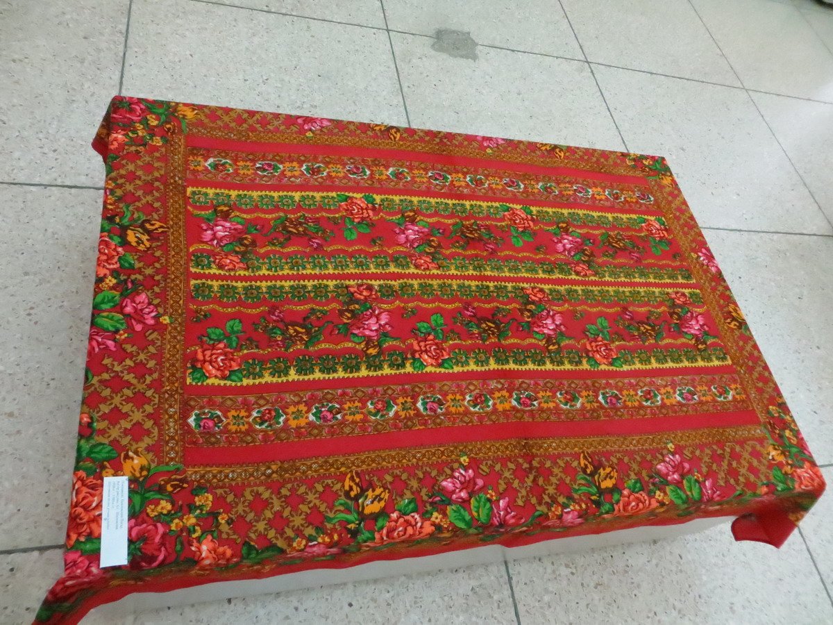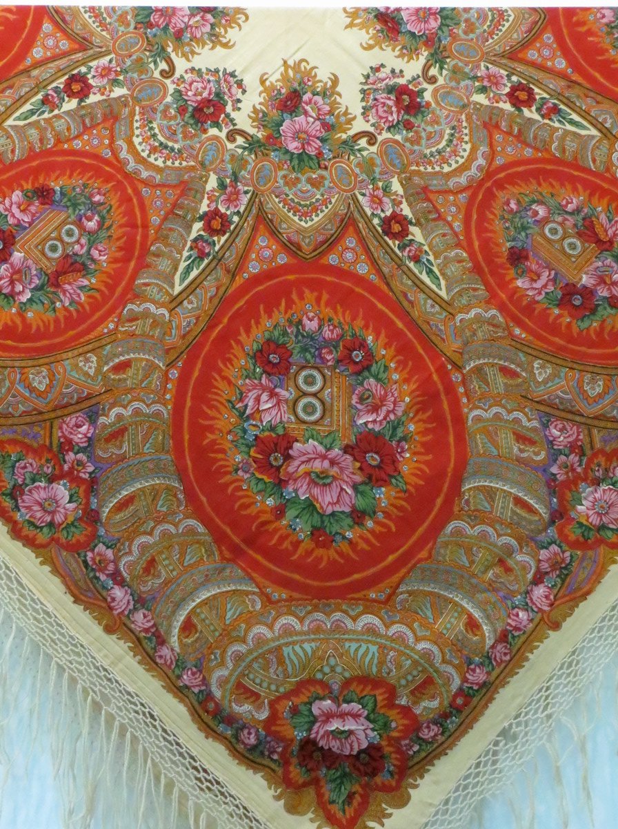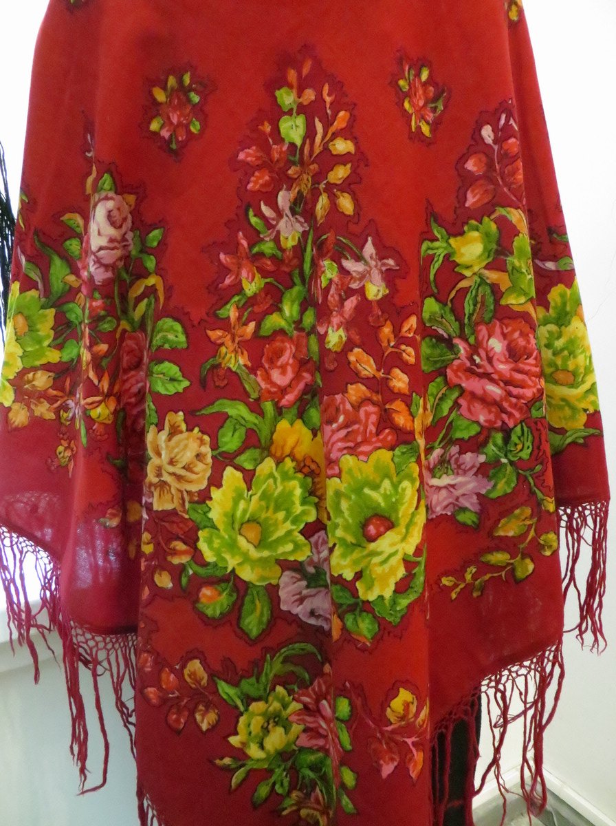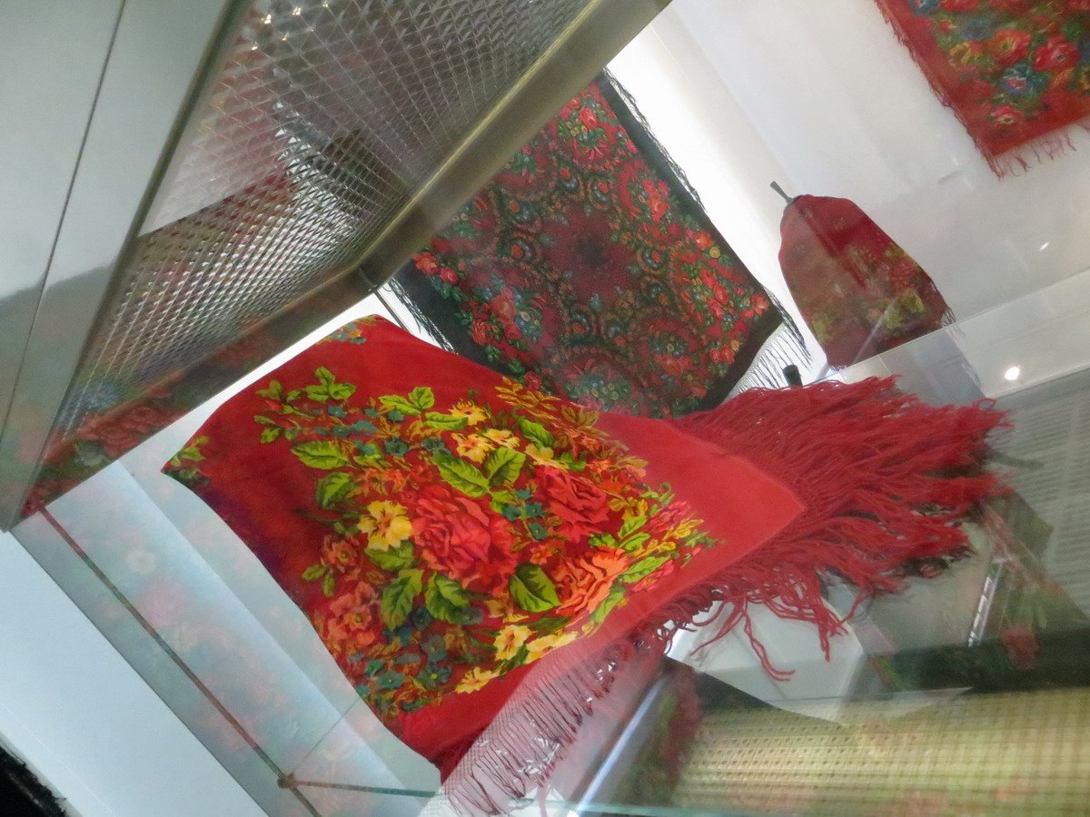 Красная шаль, к сожалению, лежала в витрине и высоко, поэтому снимок вышел зюмо некузявый.