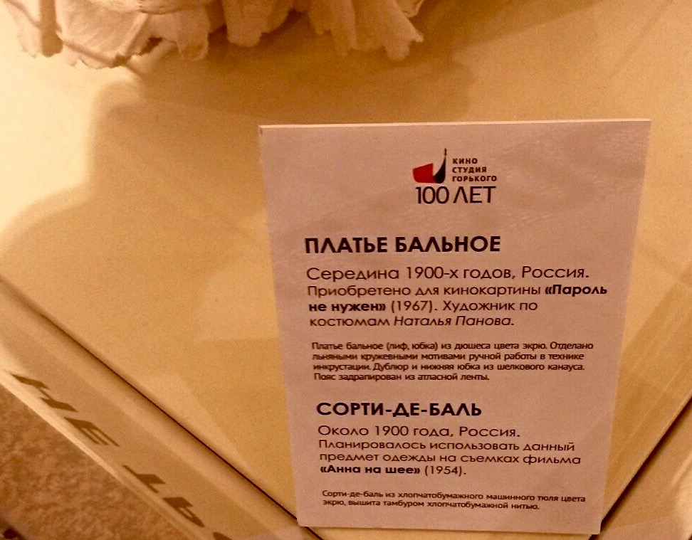 Стало открытием, что для съемок приобретают подлинные туалеты, большинство экспонатов - конца 19-начала 20 века, а то и более ранние, начала-середины 19 в. Всегда думала, что для фильмов костюмы шьют специально, по эскизам соответствующей эпохи.
