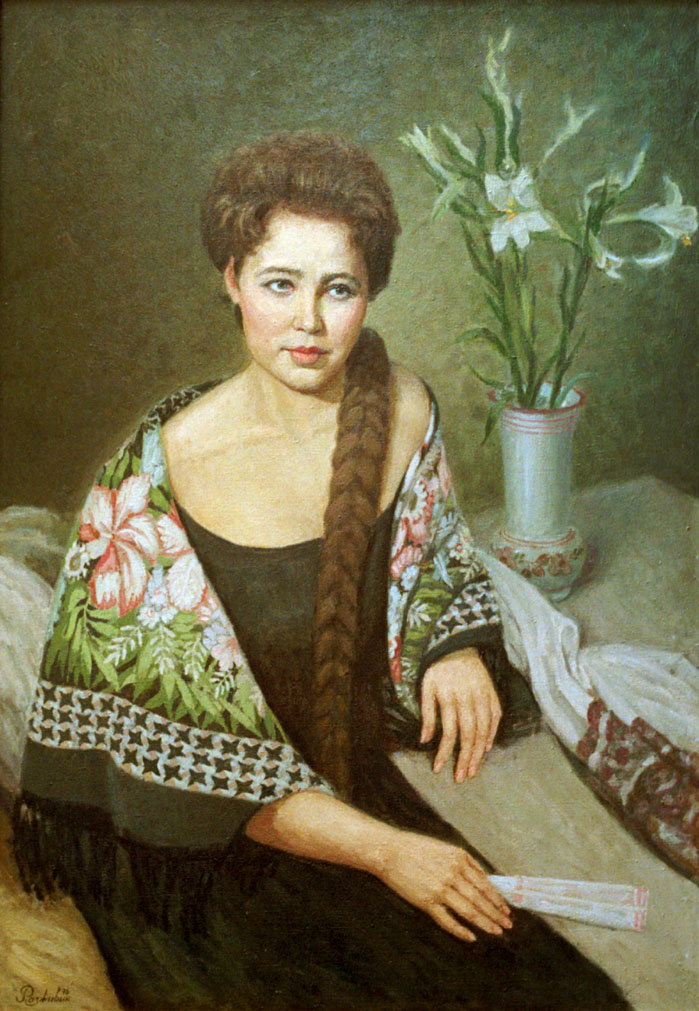 А вот что за шаль за спиной у Прекрасной Дамы? Это может знатоки подскажут. Это портрет Любови Бродской, которая работала в сфере росписи по тканям и была членом художников. Красивые. И чернопольная шаль и Женщина. И еще множество женщин на работах Киселевой. Я была поражена в хорошем смысле. Если кому интересно полная статья здесь https://artchive.ru/news/2385~Elegantny ... j_vystavke