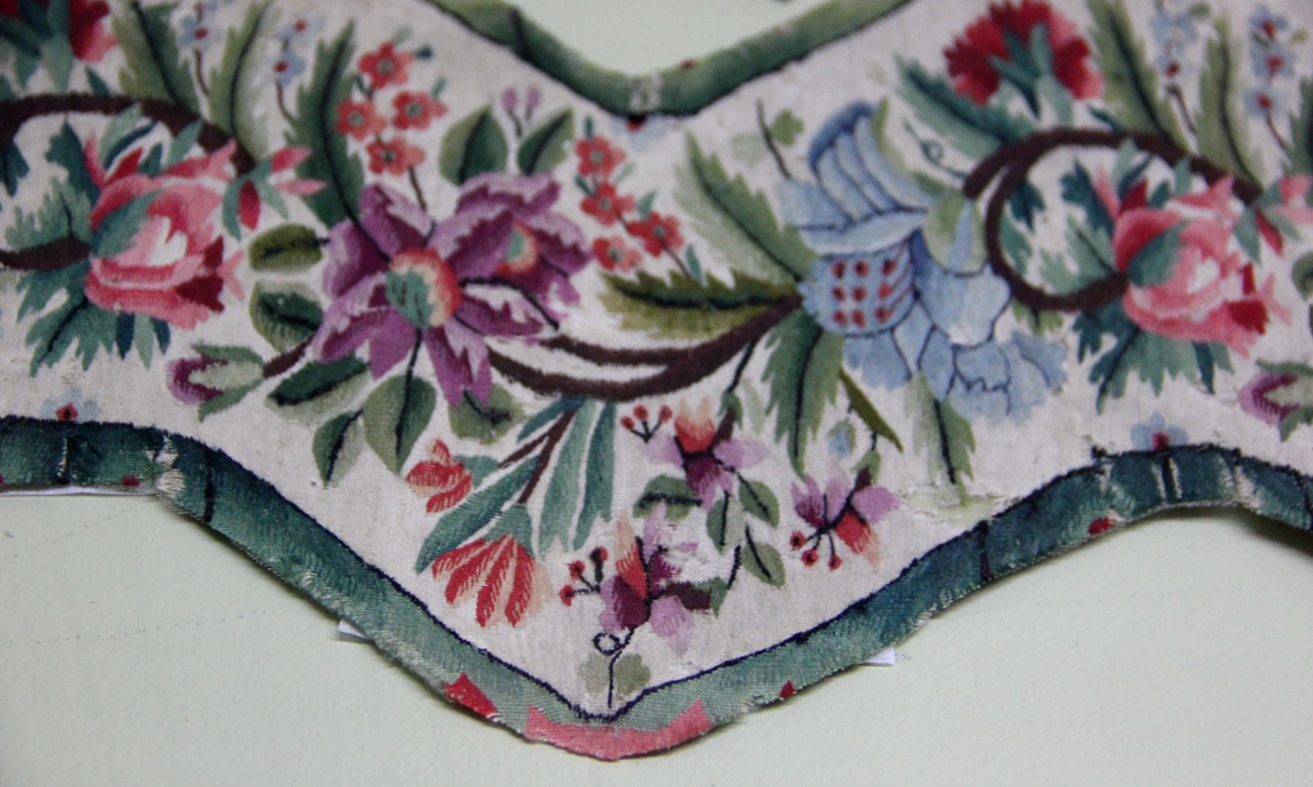 Первые две шали находятся в экспозиции дворца Дурасова на третьем этаже, бордюр там же, но на выставке "Рукоделие в усадьбе", а третья - в помещении Танцевальной школы на территории усадьбы Люблино. Метро Волжская, первый вагон из центра - далее направо мимо прудов до дворца Дурасова.
