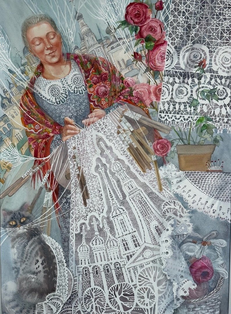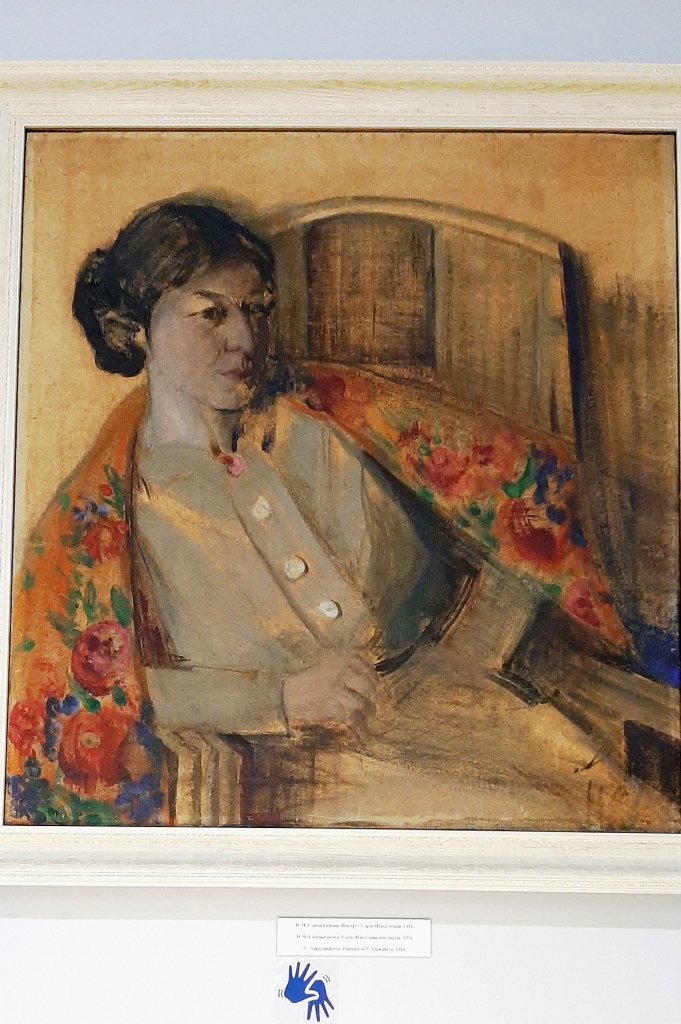 "Осенний вернисаж" в НГХМ. Наталья Павлова. Натюрморт "Яркий платок". Холст, масло.