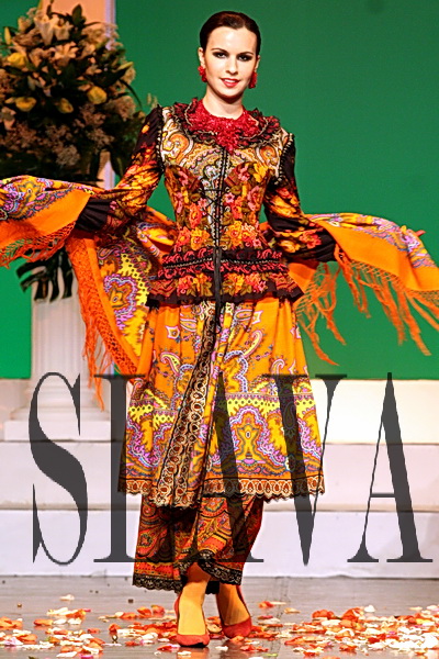 В этом показе (часть четвёртая) тоже есть модели из павловопосадских платков... И даже сумочка!